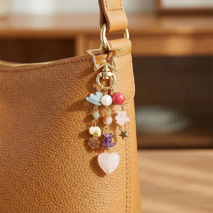 Pembe Kuvars Taşı Kalp Kolye - Açık Renkli