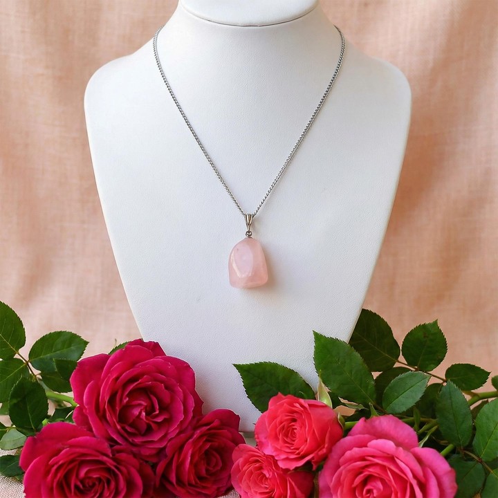 Pembe Kuvars Taşı Şekilsiz Kolye