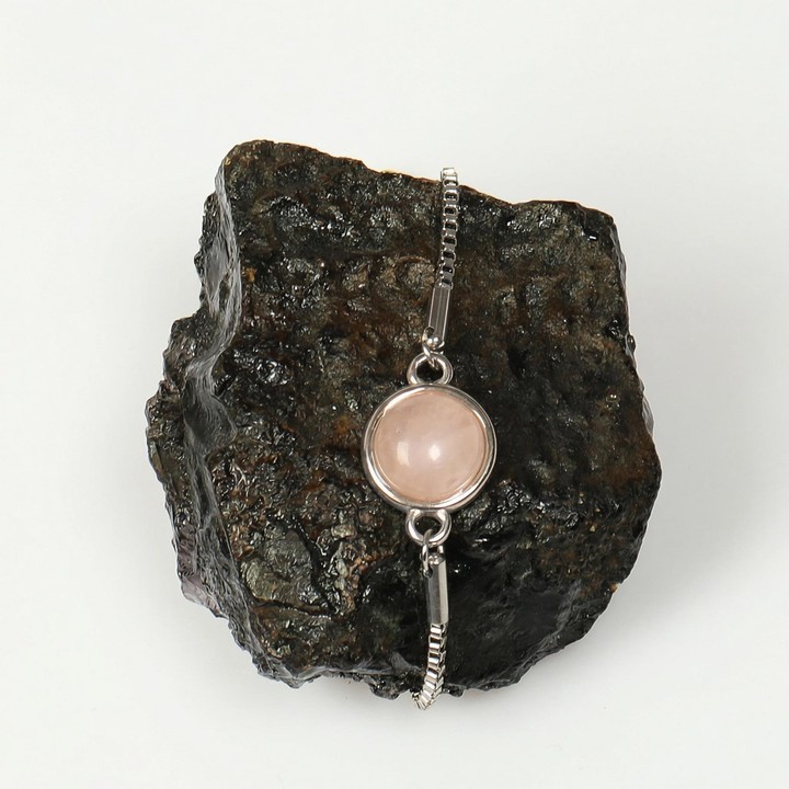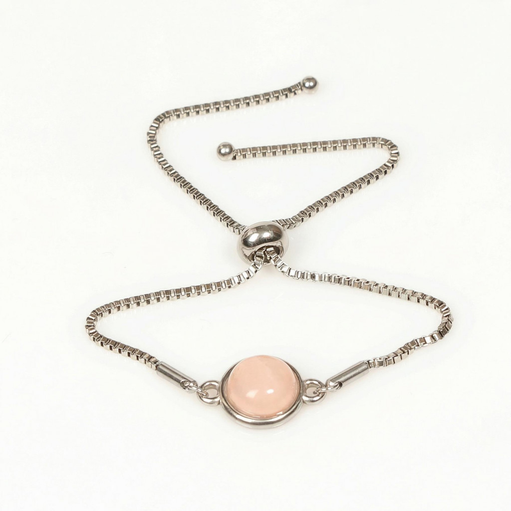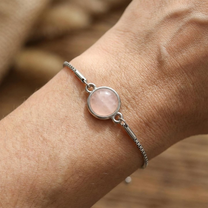 Açık Renkli Pembe Kuvars Taşı Çelik Bileklik – Gümüş Renkli, kalpten gelen bir zarafeti temsil eder.