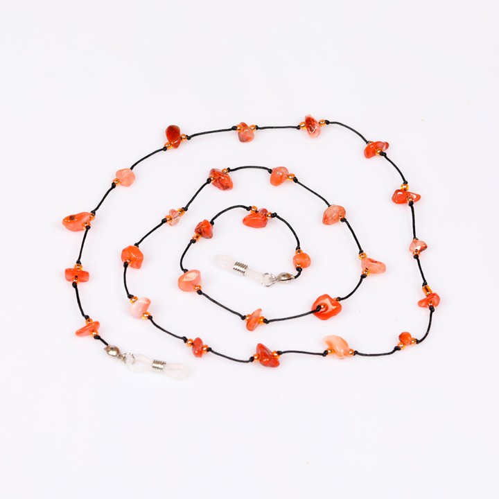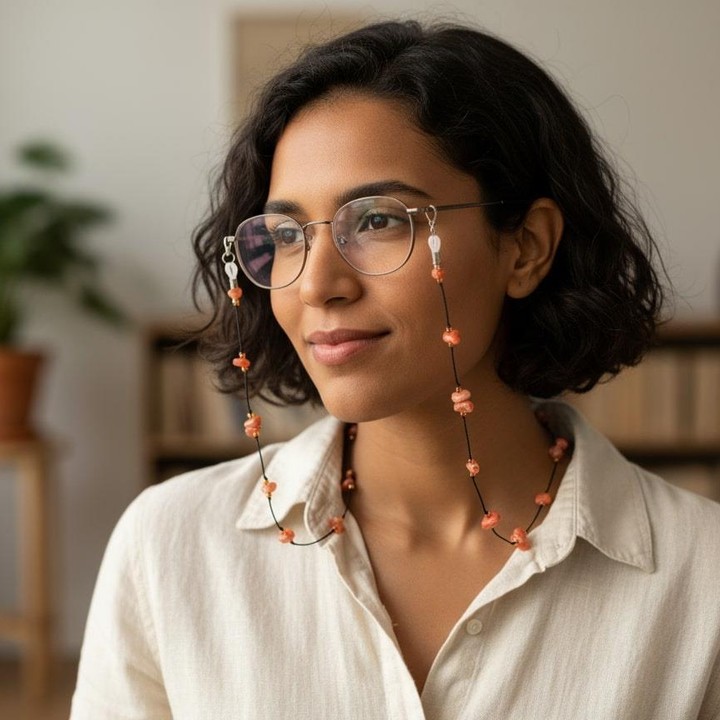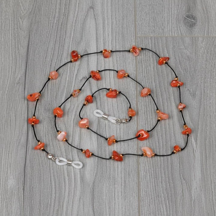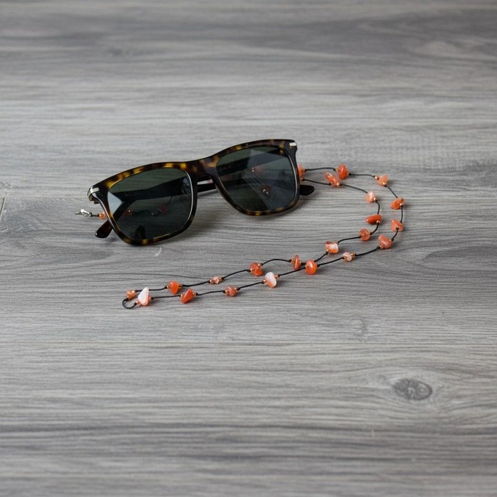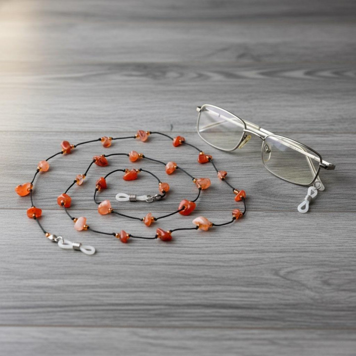 Doğadan gelen estetikle el işçiliğinin birleştiği bu akik taşlı gözlük askısı, hem zarif bir aksesuar hem de işlevsel bir kullanım sunar. Ortalama 75 cm uzunluğundaki gözlük ipi, sıcak toprak tonlarındaki gerçek akik taşlarıyla gözlüğünüze doğal bir duruş kazandırır.