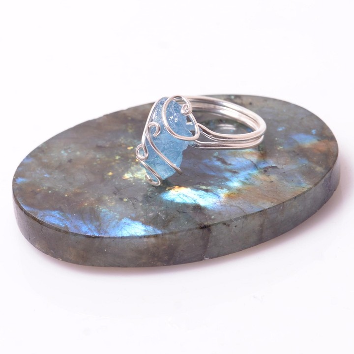Akuamarin Taşı Ayarlamalı Yüzük - Ham Akuamarin