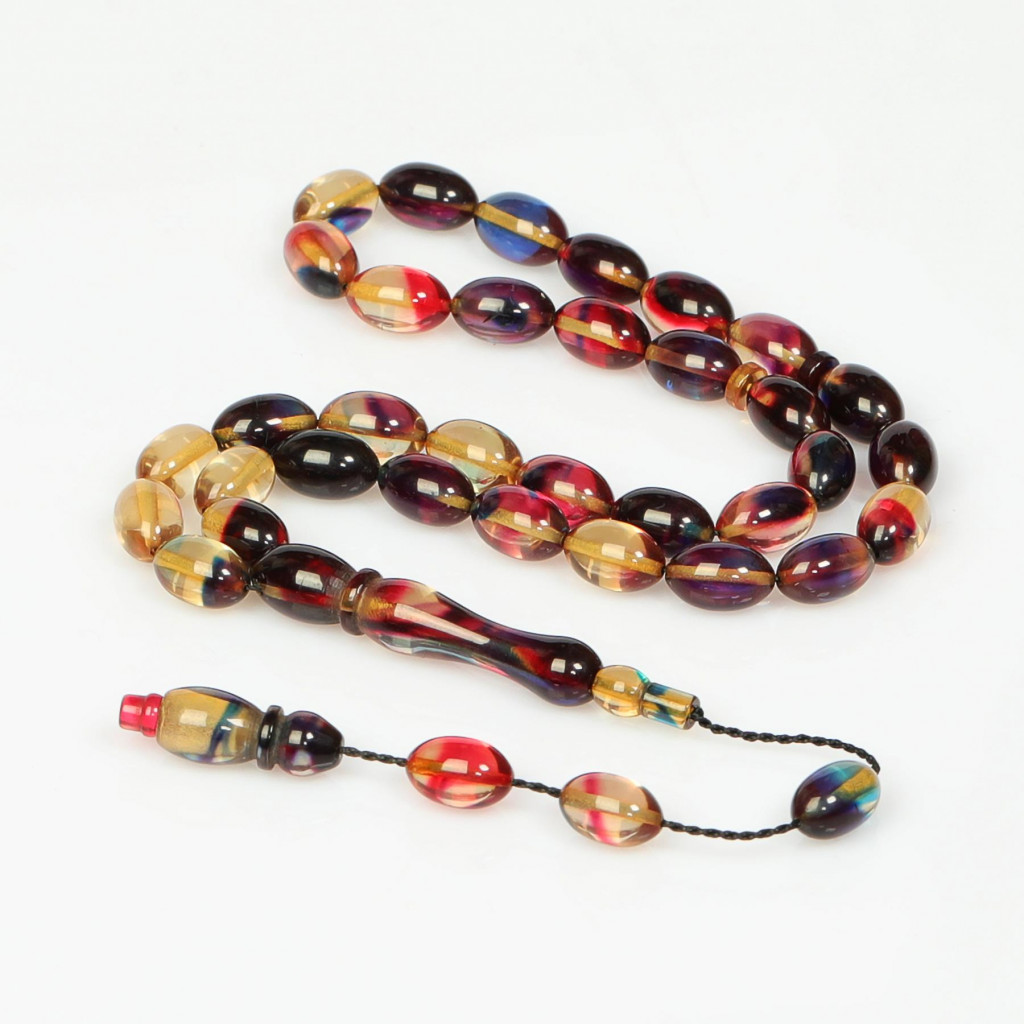 Alacalı Sıkma Kehribar Tesbih (7×11 mm)