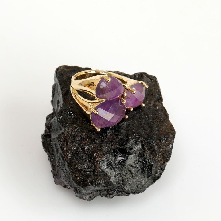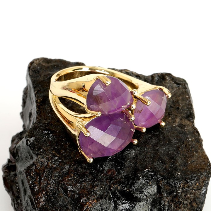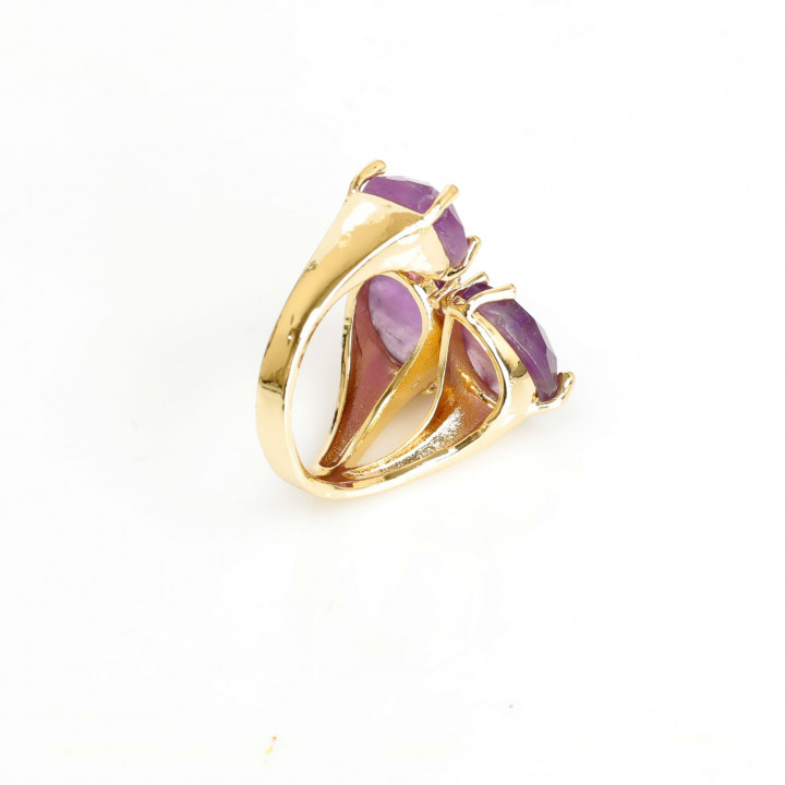 Altın Renkli Ametist Taşı Üçlü Yüzük