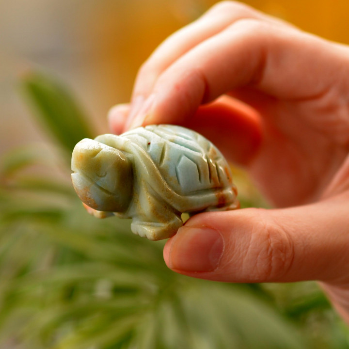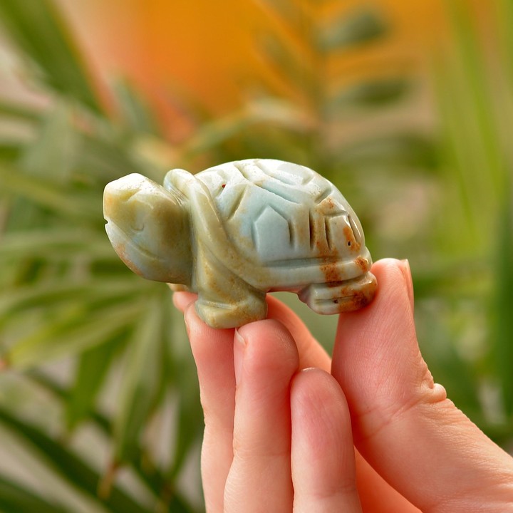 Amazonit Taşı Kaplumbağa Figürü