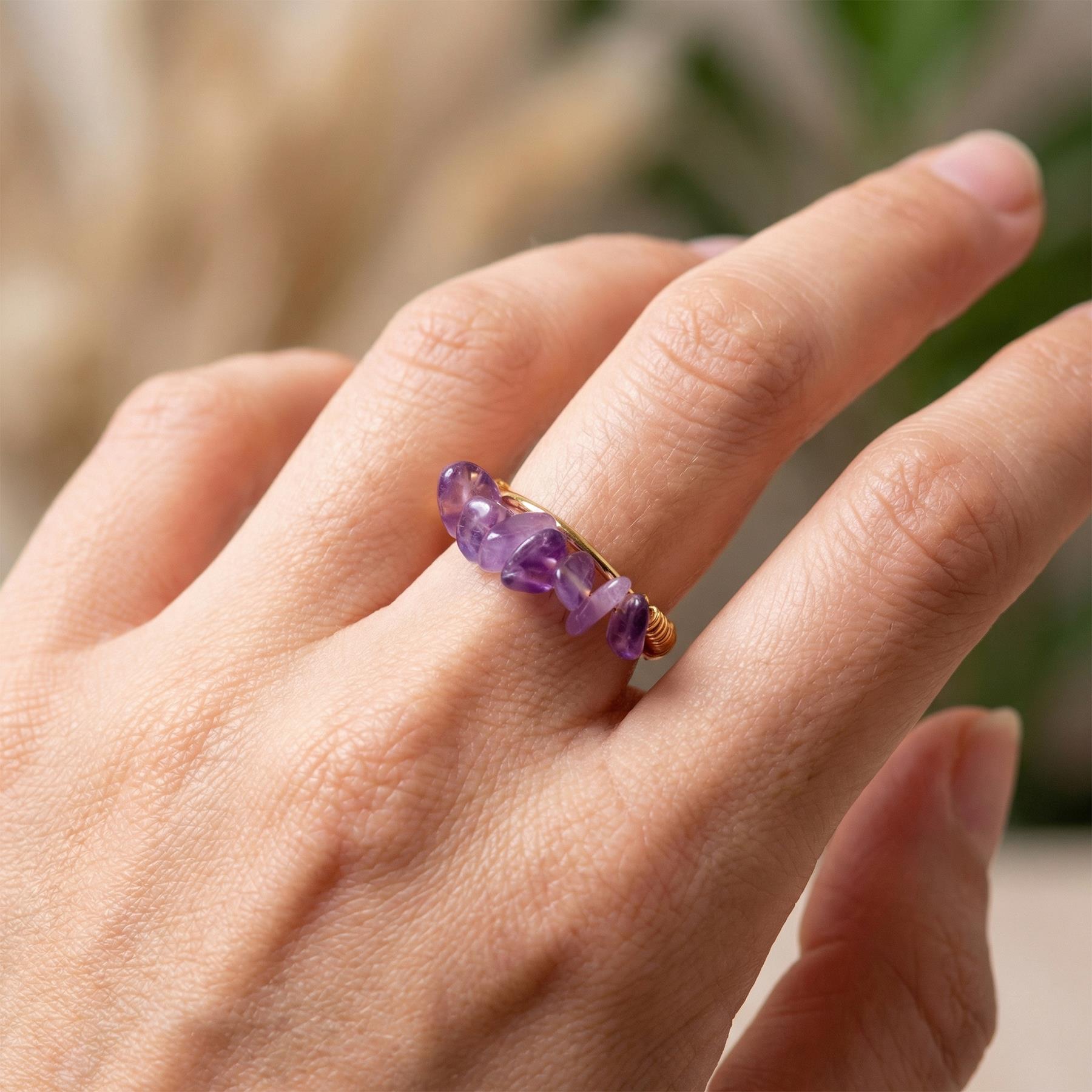 Not: Ürün, hakiki doğal taş kullanılarak hazırlandığı için taş dokusu, renk tonu ve kesim detayları her üründe küçük farklılıklar gösterebilir. Bu doğal farklılıklar, sahip olduğunuz yüzük modelini size özel ve benzersiz kılar.Altın ışıltı ve mor kristalin dengesi…
