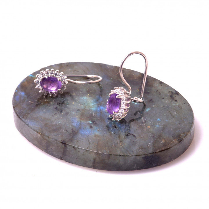 Ametist Taşı Gümüş Küpe - Taş Çerçeveli