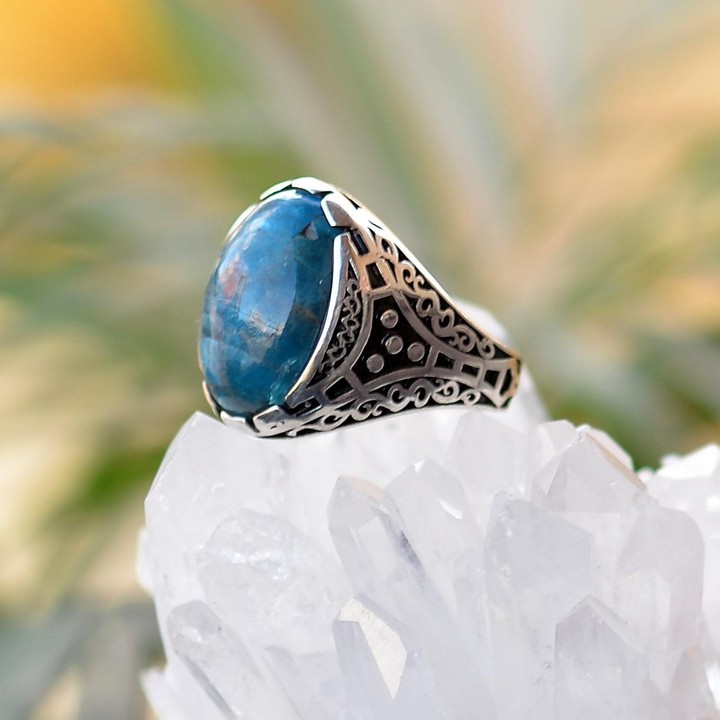 Apatit Taşı Gümüş Yüzük - Erkek Yüzüğü
