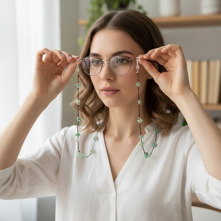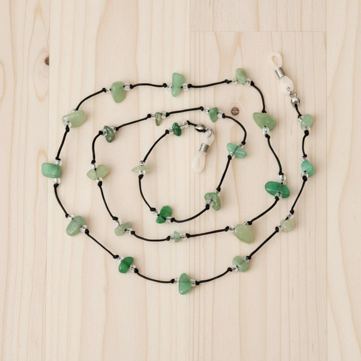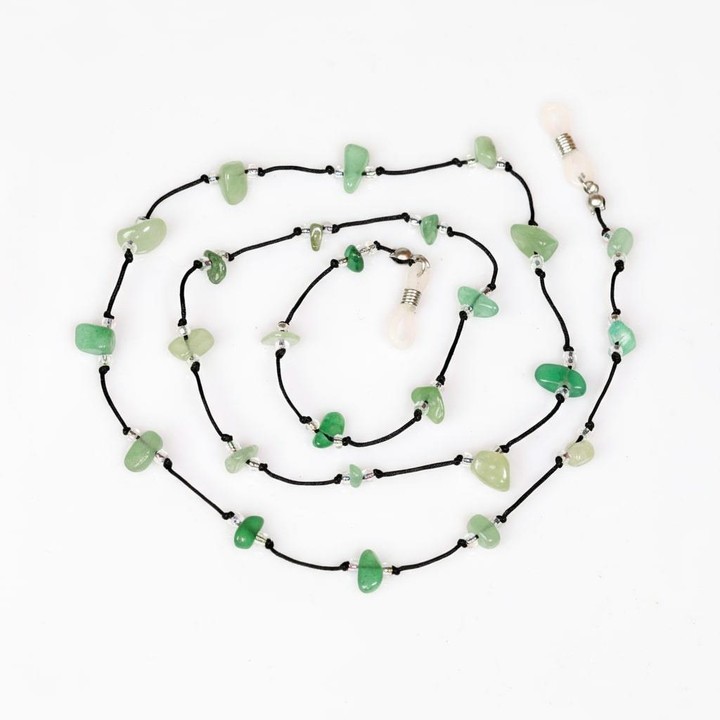 Doğal yeşil aventurin taşlarıyla hazırlanmış bu özel gözlük askısı, şıklığı ve pozitif enerjiyi bir araya getirir. 75 cm uzunluğundaki doğal taş gözlük ipi, hem kadın hem erkek kullanıcılar için idealdir. Günlük kullanımda gözlüğünüzü güvenle taşırken aynı zamanda tarzınızı öne çıkarır.