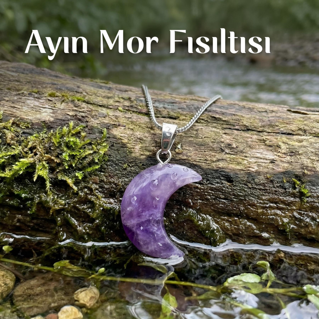 Ay Şeklinde Ametist Taşı Kolye – Küçük Boy, gökyüzünün en şiirsel sembolünü ametistin doğal mor tonlarıyla buluşturur.