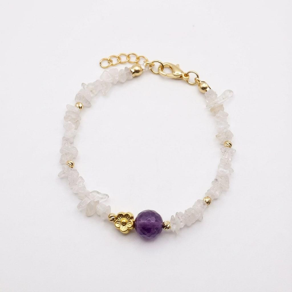 Ay Taşı Kırık Taş Bileklik - Ametist Taşlı - Altın Renkli