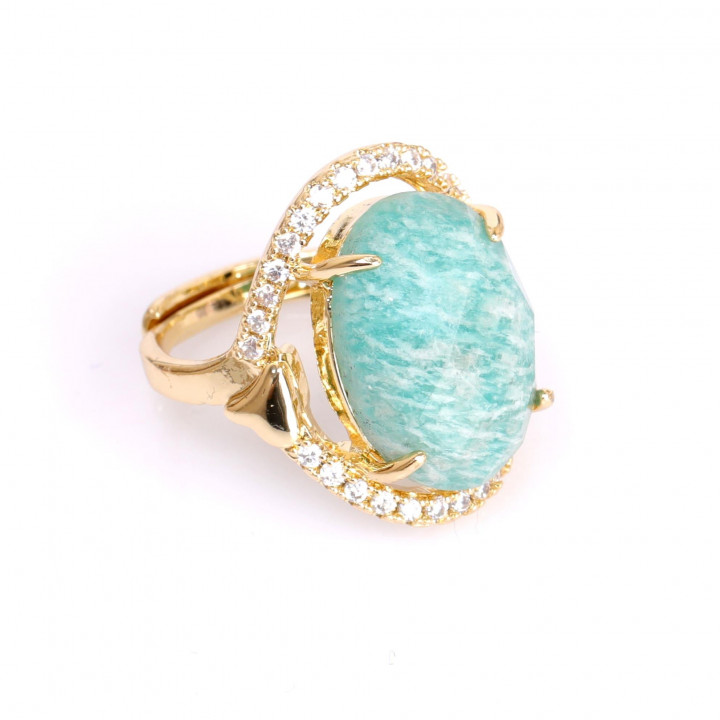 Taş Süslemeli Amazonit Taşı Yüzük - Altın Renkli Ayarlamalı Yüzük