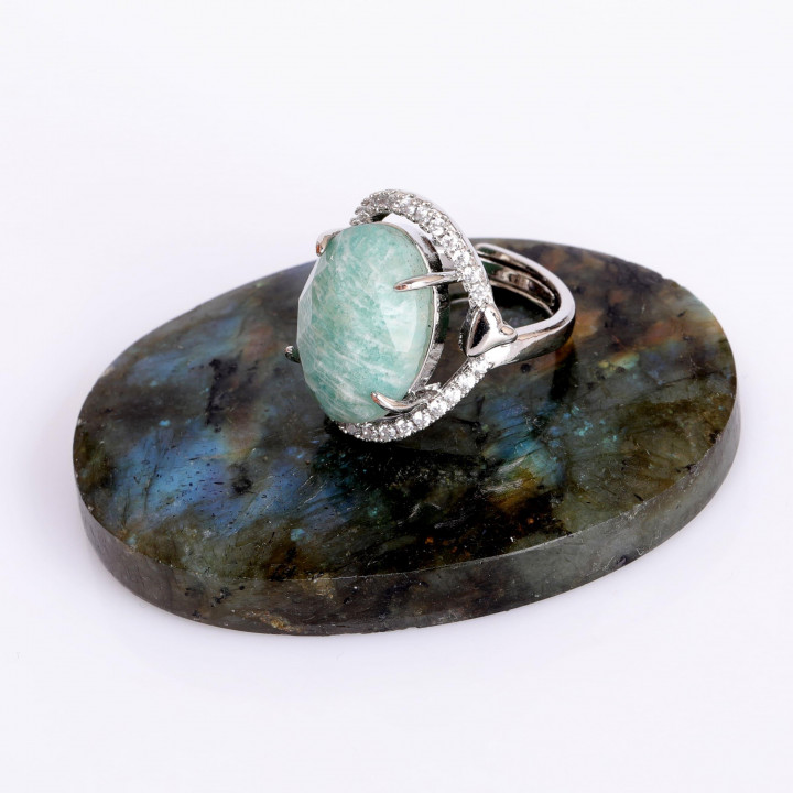 Taş Süslemeli Amazonit Taşı Yüzük - Ayarlamalı Yüzük