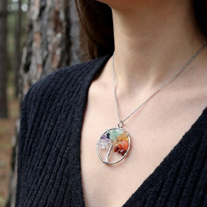 Kolyede yer alan her taş, çakraları dengelemek amacıyla özenle seçilmiştir: