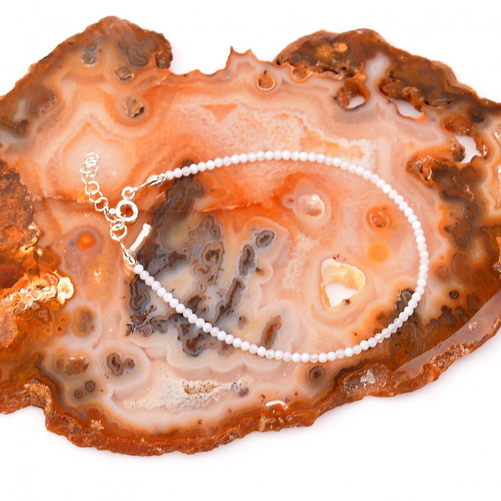 Çok İnce Kalsedon Taşı Gümüş Bileklik - 2 mm