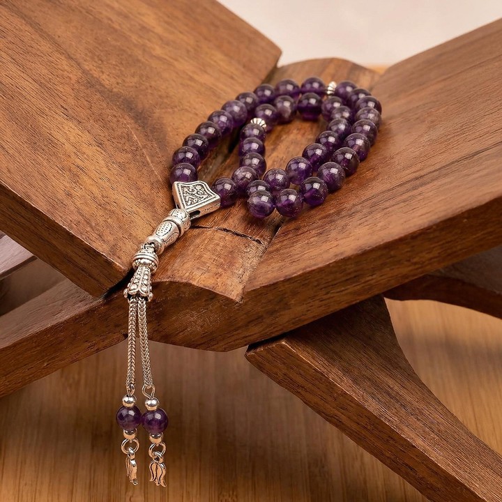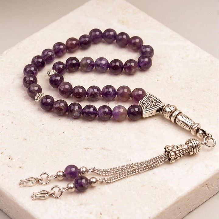 Ametist taşı, zihinsel açıklık ve düşünsel berraklık ile anılan doğal taşlardan biridir. İnce habbeleri sayesinde zarif bir kullanım deneyimi sunar. ✨