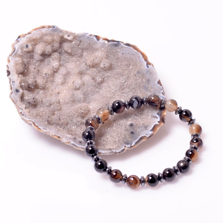 Black Acrylic-Hematite Stone Bracelet (8 mm)