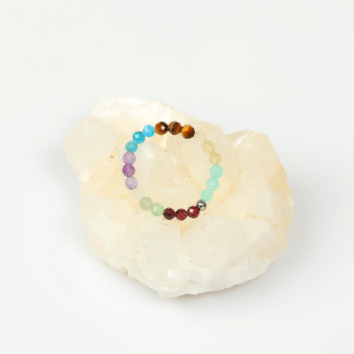 Rivayet edilir ki çakra taşları enerji merkezlerini dengeleyebilir. Parmakta taşınan bu renkli kompozisyon; motivasyon, huzur, cesaret ve sezgi enerjilerini bir araya getirir. Elastik yapısı sayesinde konforlu bir kullanım sunar.