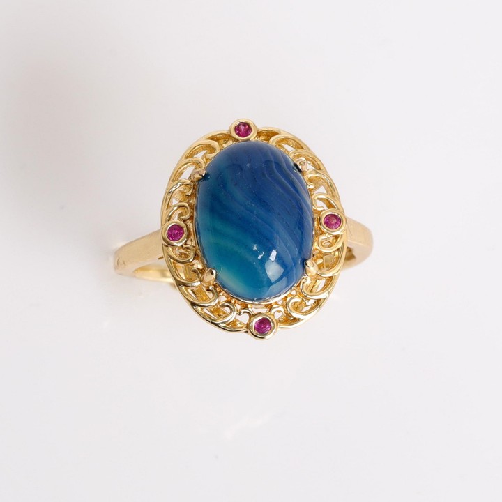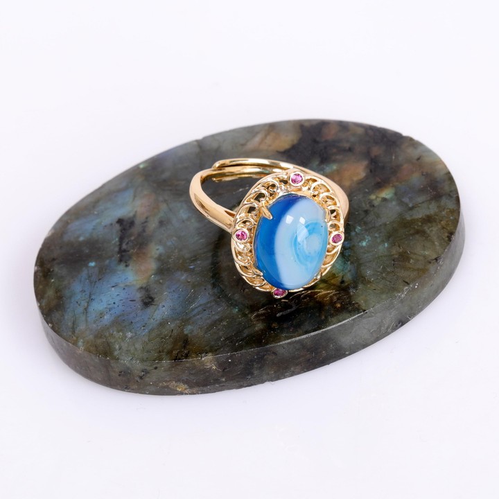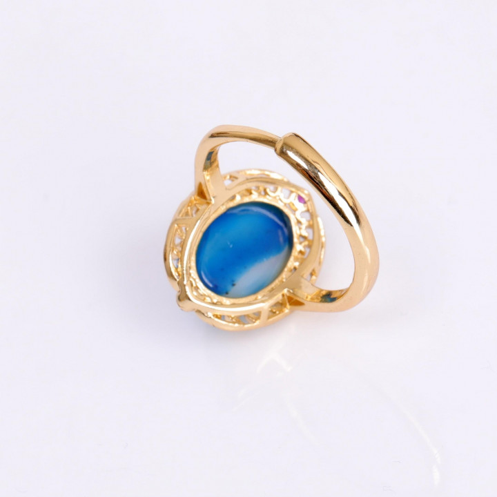 Hanedan Model Mavi Akik Taşı Yüzük - Altın Renkli