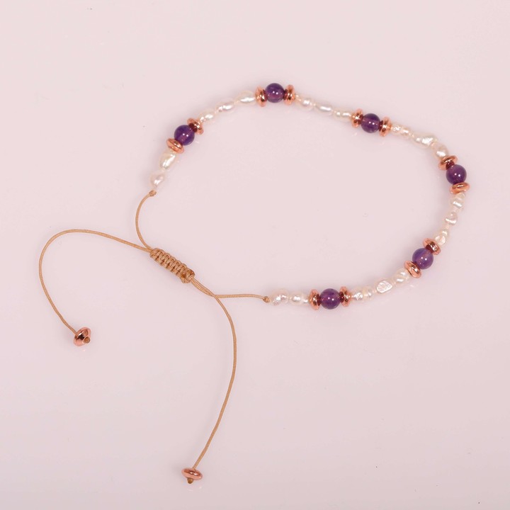 İnci ve Ametist Taşı Ayarlamalı Bileklik 3*4 mm