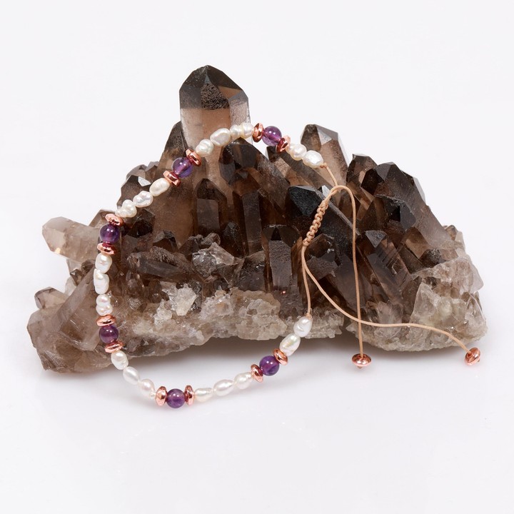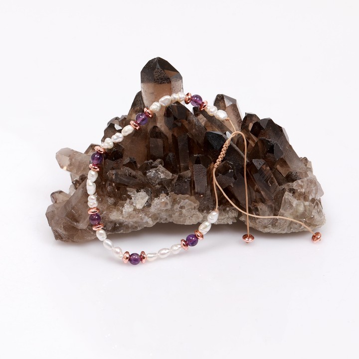 Not: Bu üründe, ortalama 3*4 mm doğal inci, 4mm ametist ve 2*4 mm rose hematit taşı kullanılmıştır. Şık ve zarif tasarımı ile gündelik kullanım için uygun bir doğal taş bilekliktir.