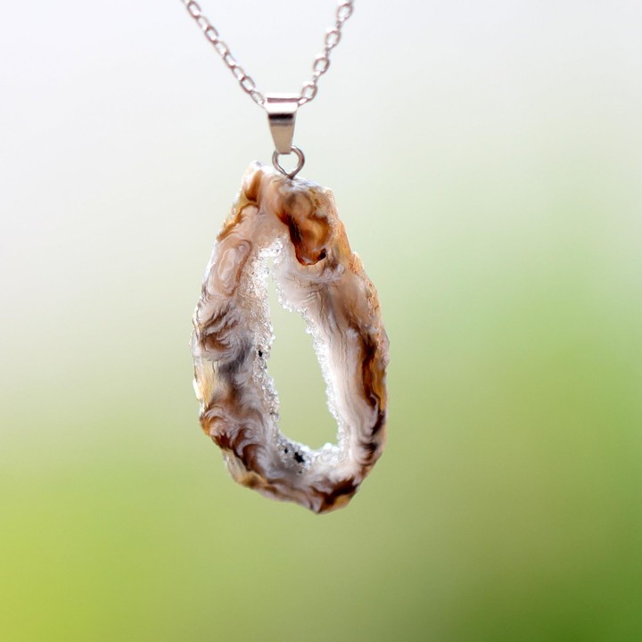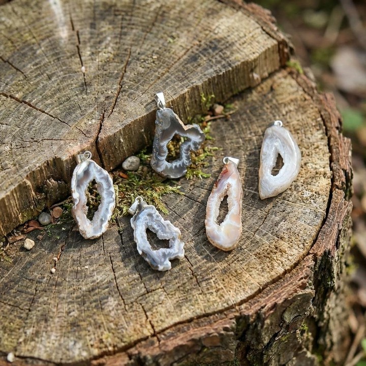 Doğanın eşsiz dokusunu taşıyan Doğal Kalsedon Dilim Kolye, organik formu ve tamamen kendine özgü kristal yapısıyla benzersiz bir aksesuar arayanlar için mükemmel bir seçimdir. Her bir kolye, doğal taşın yapısına göre farklı renk tonu, damar yapısı ve şekille tamamen tek ve özel olarak oluşur.