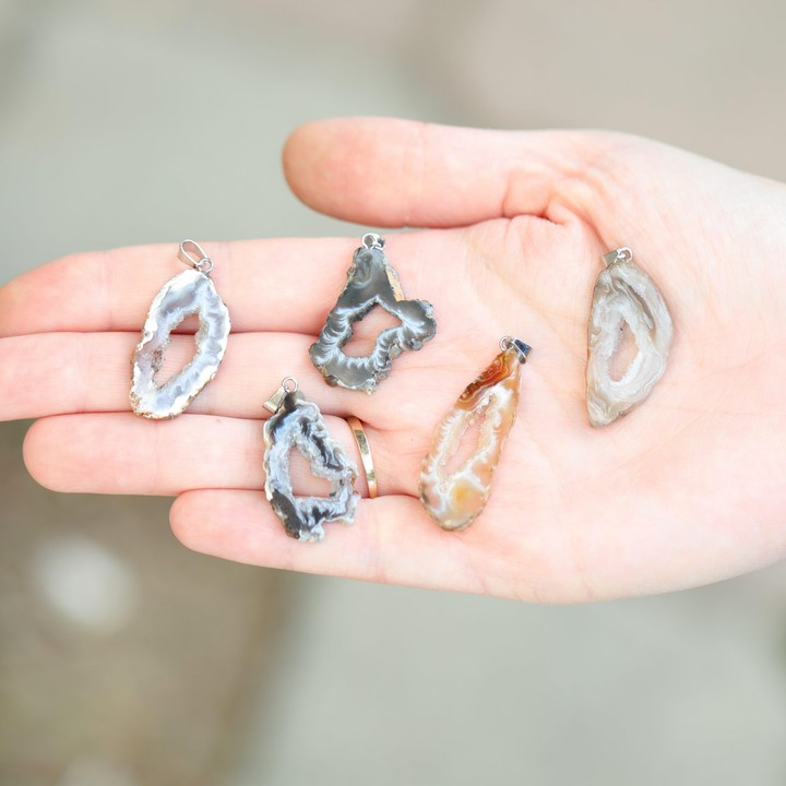Kalsedon tamamen doğal bir taş olduğu için renk tonu, desen, damar hareketi ve iç boşluk şekli her üründe farklılık gösterir. Bu doğallığı göstermek için çoklu görseller eklenmiştir.