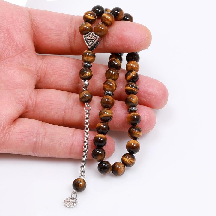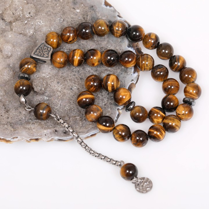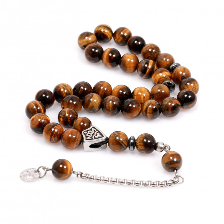 Kaplan Gözü Taşı Çelik Tesbih ( 8 mm ) - Kararmaz Püsküllü