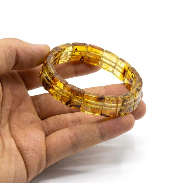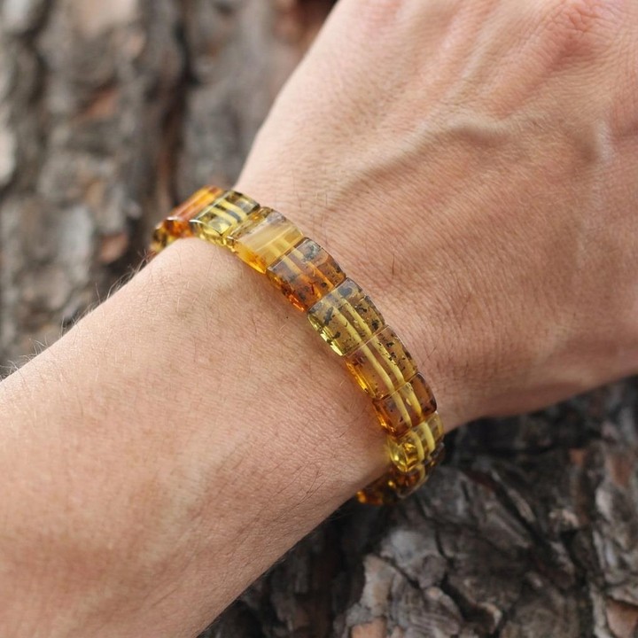 Kare Kesim Baltık Kehribar Bileklik – Doğal Gerçek Kehribar (Elastik) - Fosilli
