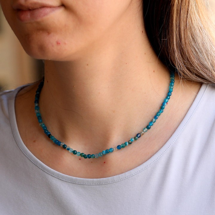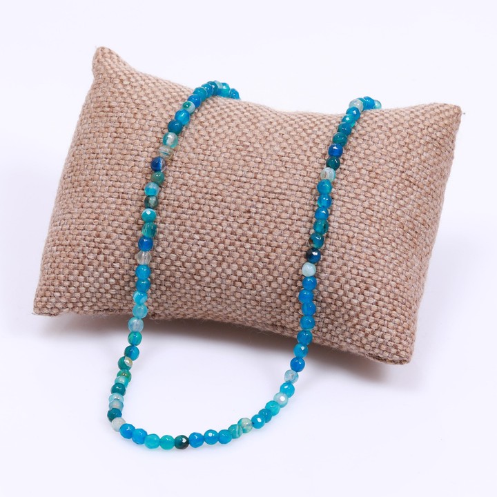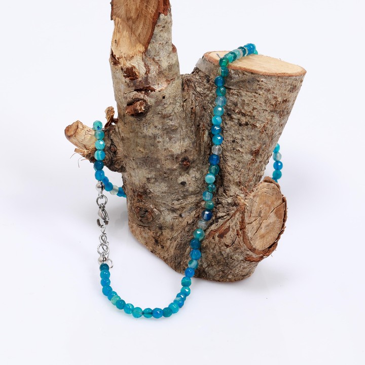 Mavi Renkli Akik Taşı Kolye - Çelik Aparatlı 4 mm Faset Kesim