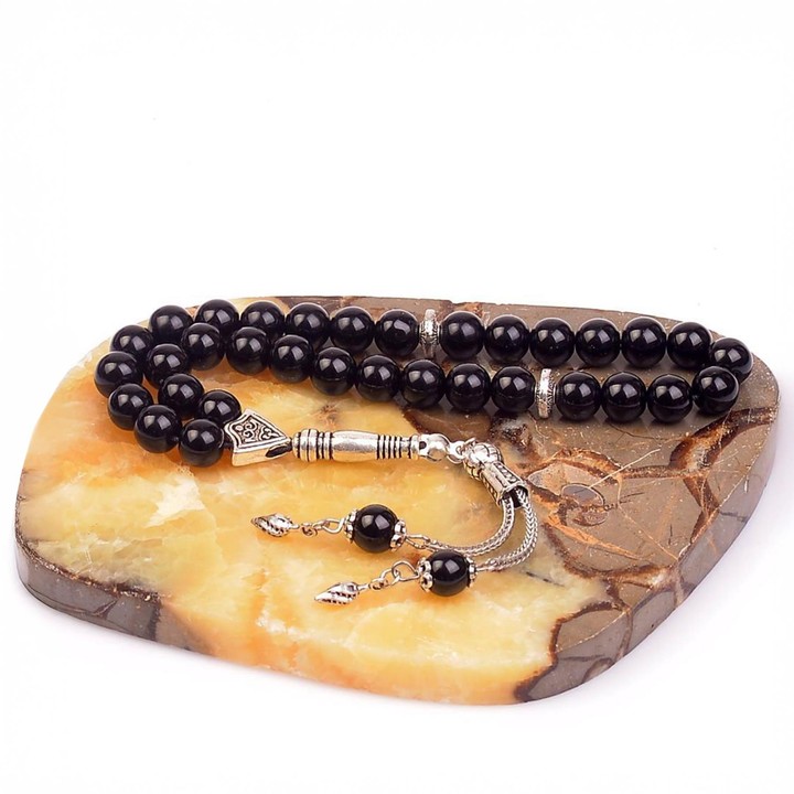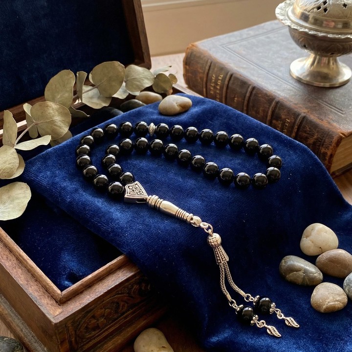 Obsidyen Taşı Tesbih, doğanın volkanik dönüşümünden doğan güçlü karakteriyle dikkat çeker. Parlak siyah tonlarıyla bilinen obsidyen taşı, yüzyıllardır güçlü koruyucu taşlardan biri olarak anılmıştır. Doğal yapısıyla tesbihin her habbesinde kendine özgü bir derinlik ve karakter hissedilir.