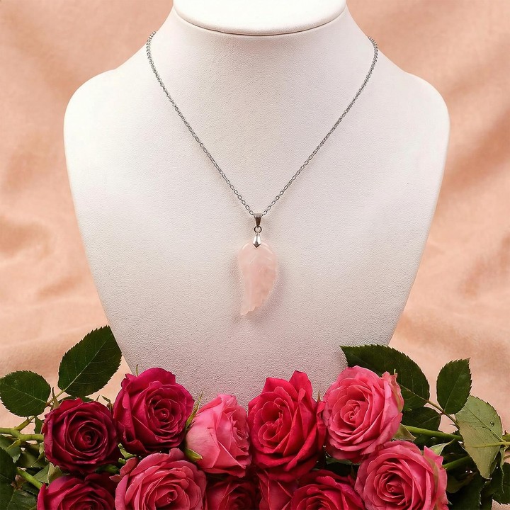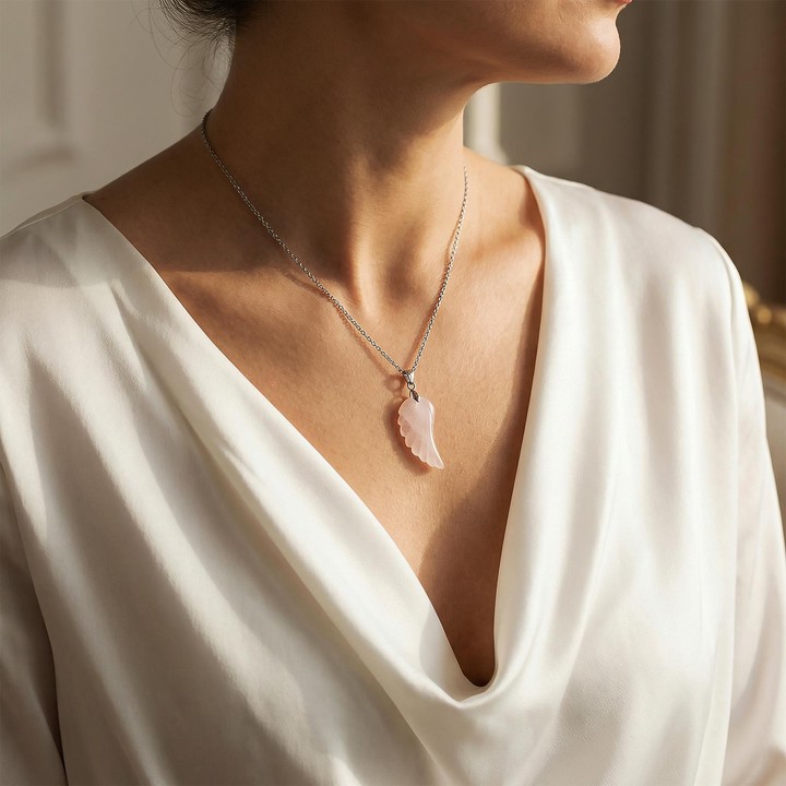 Kanat formu; hafifliği, yükselişi ve kalpten gelen niyeti temsil eder. Pembe kuvars taşı, sevgi ve içsel uyum temasıyla anılır; takıldığında sembolik olarak kalp enerjisini hatırlattığı rivayet edilir.