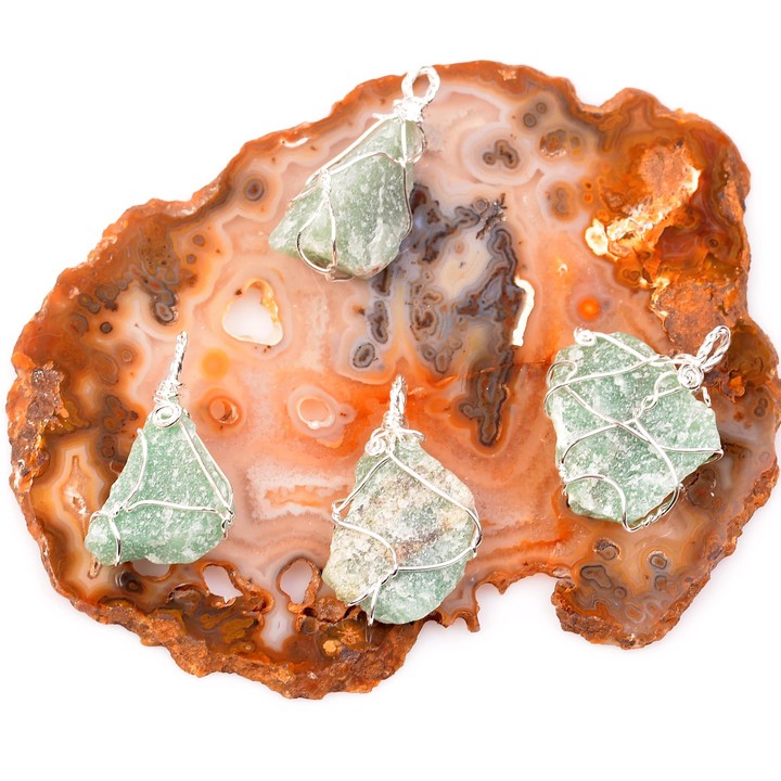 Raw Aventurin Stone Kolye-Tel Sarızli