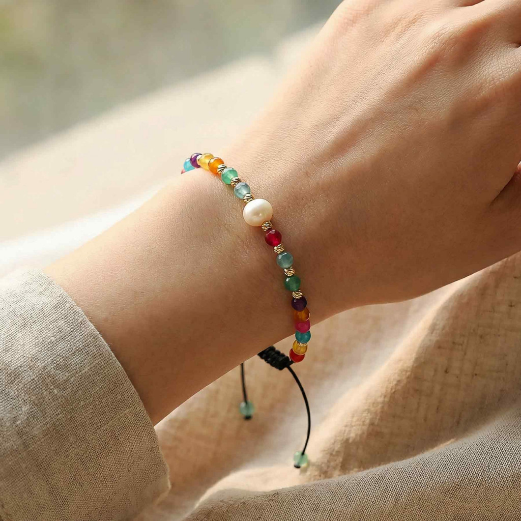 Renkli Akik ve Gerçek İncili Ayarlanabilir Doğal Taş Bileklik, ayarlanabilir yapısıyla yetişkin kadın ve erkekler için uygundur ve el işçiliği ile üretilmiş özel bir parçadır.
