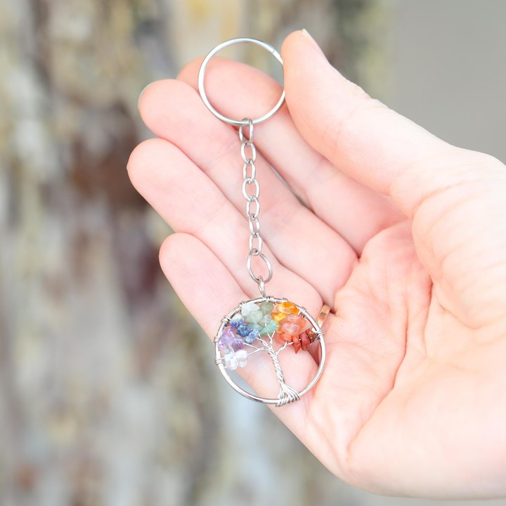 Doğal taşların enerjisini her an yanında taşımak isteyenler için tasarlanan Çakra Hayat Ağacı Anahtarlık, estetik görünümü ile hem günlük kullanımda hem de hediye olarak mükemmel bir seçenektir. Anahtarlık ucu metal aksamıyla birlikte ortalama toplam 8,5 cm uzunluğa sahiptir.