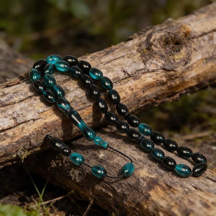 Her bir Turkuaz Rengi-Siyah Sıkma Kehribar Tesbih, parlak ve göz alıcı görünümüyle, sahibine farklı anlarda farklı detaylar sunar. ✨