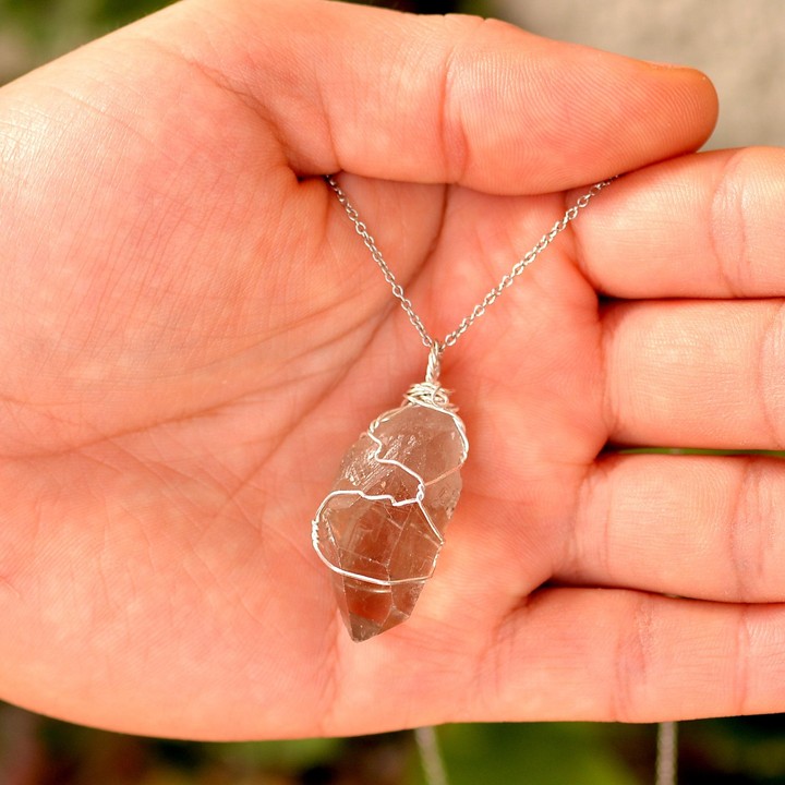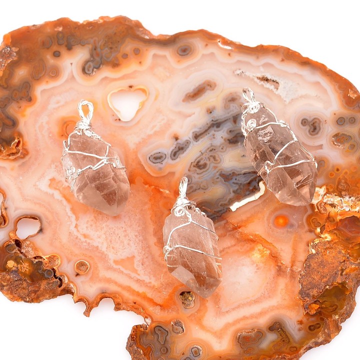 Ham Dumanlı Kuvars Kolye - Gümüş Tel Sargılı