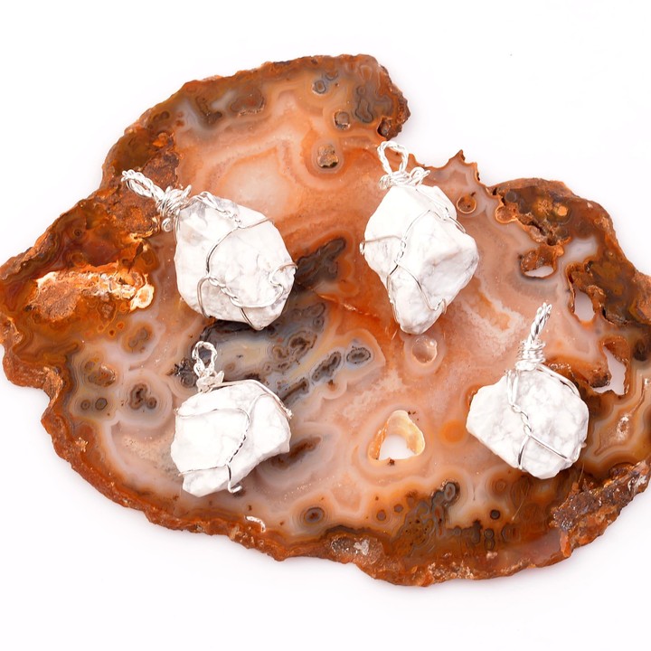 Ham Havlit Taşı Kolye - Tel Sargılı