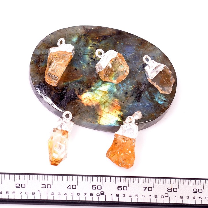 Ortalama 1,2 cm eninde, 2 cm boyunda doğal sitrin taşının ışıltısını, 45 cm uzunluğundaki gümüş zincir tamamlar.