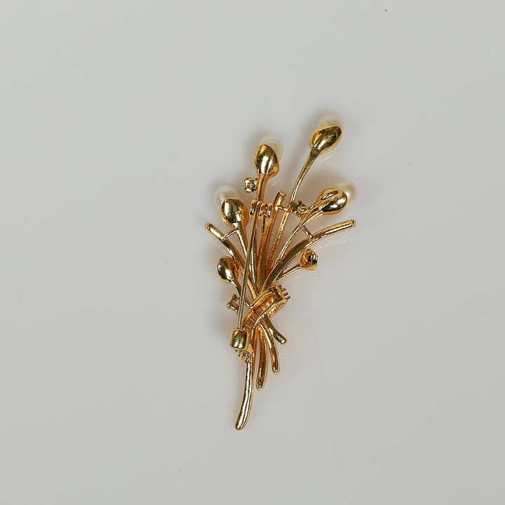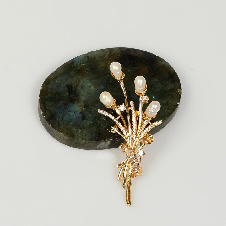 İncilerin zarafeti ve altın renginin sıcaklığıyla, İnci Buketi - Altın Renk Broş, incelikli tasarımında mükemmel bir uyum yakalıyor.