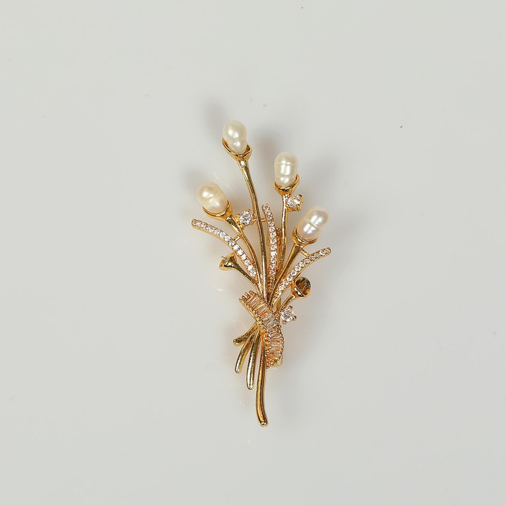 İnci Buketi - Altın Renk Broş, ayakları yere sağlam basan bir tarz arayanlar için ideal bir seçimdir. İncilerin doğal ışıltısı ve altının zengin dokusu, bırakın sizi her ortamda göz alıcı kılsın. 💫