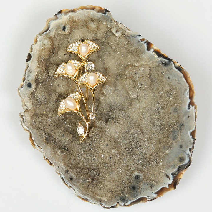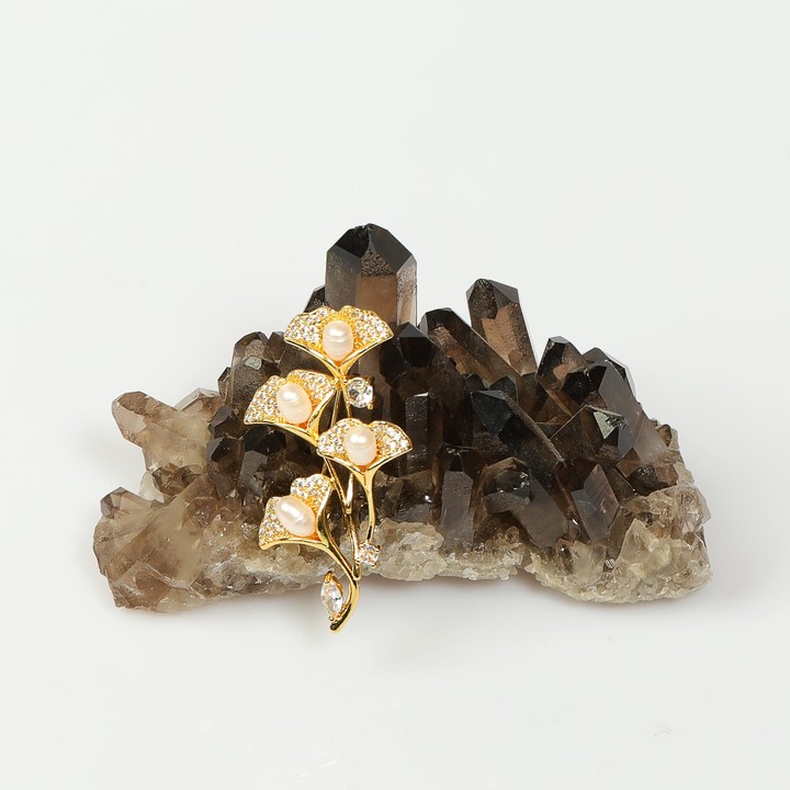 İnciler, asaleti, içsel dengeyi ve sakinliği simgeler. Bu broşun göz alıcı tasarımı, ruhunuzu doğadan gelen bir huzur ile sarar. Bir orkide demetinin, zarif yaprakları ve incisi, büyülü bir şıklık yaratır.