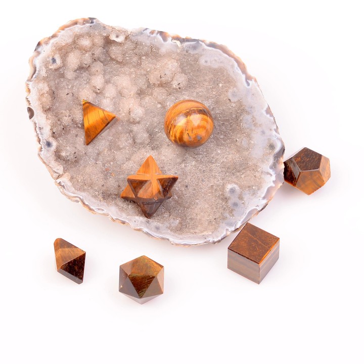 Bir kese içerisinde fotoğrafta görünen 7 farklı geometrik şekildeki doğal taş size ulaşacaktır.