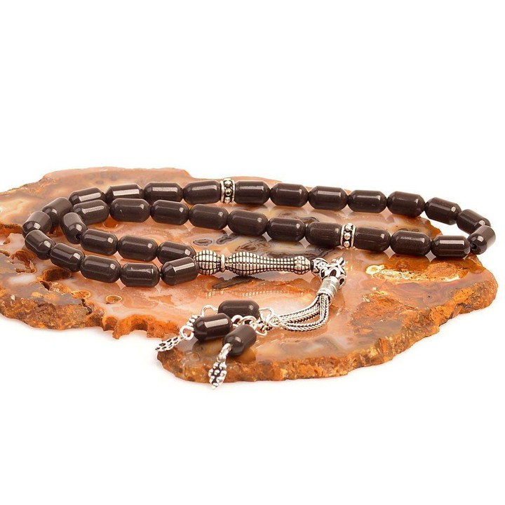 Siyah Akik Taşı Gümüş Tesbih (8 mm)