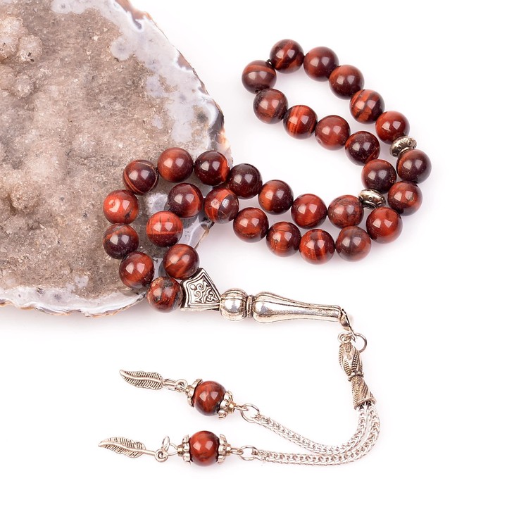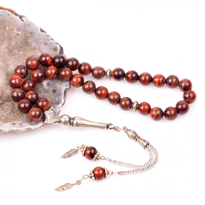 Kırmızı Kaplan Gözü Taşı Tesbih - 8 mm
