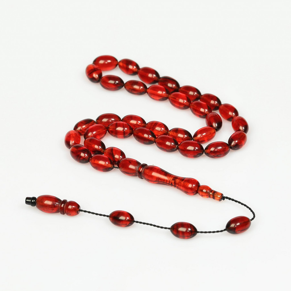 Kırmızı Renk Sıkma Kehribar Tesbih (7*11 mm)
