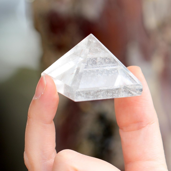 Doğanın saf enerjisini yansıtan kristal kuvars piramit, hem dekoratif hem de enerji dengeleyici özelliğiyle öne çıkar. Şeffaf yapısı sayesinde ışığı etkileyici biçimde yansıtır ve bulunduğu ortama ferahlık katar.