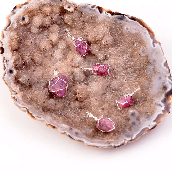 Küçük Boy Ham Yakut Taşı Kolye - Tel Sargılı