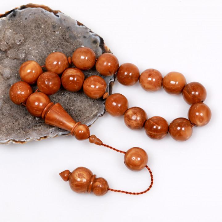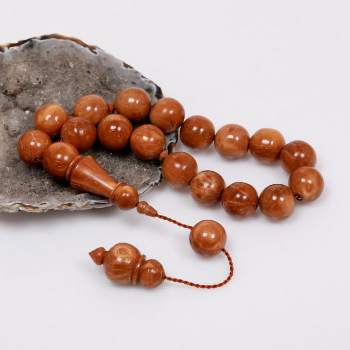 Bu özel tesbih, dayanıklılığı ve antibakteriyel yapısıyla bilinen doğal kuka ağacından el işçiliğiyle üretilmiştir. 13,5 mm boyutundaki 17 adet habbesi, hem estetik hem de kullanım açısından ideal bir deneyim sunar. İmameden uzunluğu 16 cm, toplam uzunluğu ise 26 cm’dir.