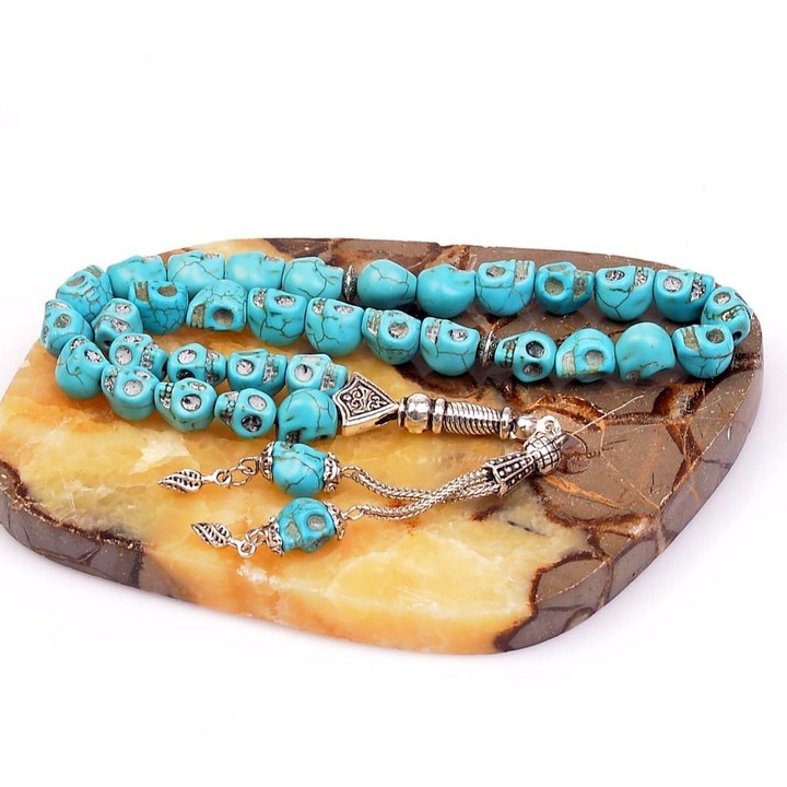 Kuru Kafa Turkuaz Taşı Tesbih - Pres Turkuaz