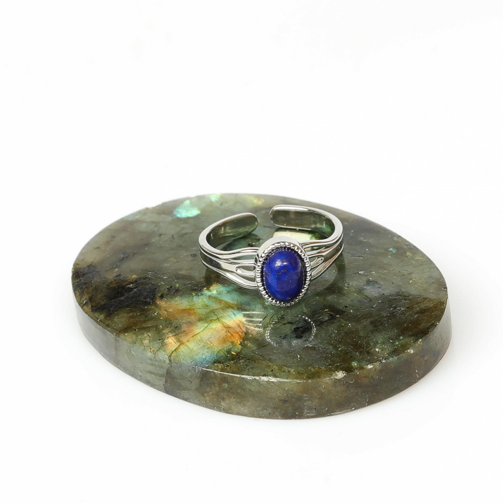 Lapis lazulinin mistik etkisi ve çelik yüzüğün sağlam yapısı ile güçlü ve zarif bir stil yaratın. 🦋